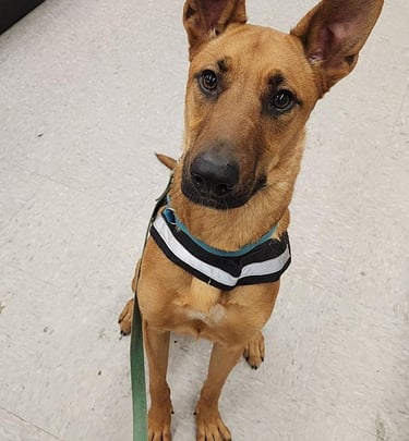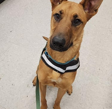 Spaz extraordinaire! This young man saw this whole process through from the beginning. He is my personal service dog and one of the goofiest, most sociable & mischevious pup I've ever met. He loves having company over and has a naturally fun & loving way about him. For any service dog training classes, he will at some point be implemented to help guide your pup into a reliable working pup!